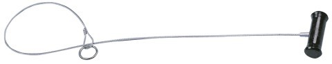 Chytací lanová smyčka k fixaci prasat s dřevěným úchytem a uvolňovacím kroužkem.
