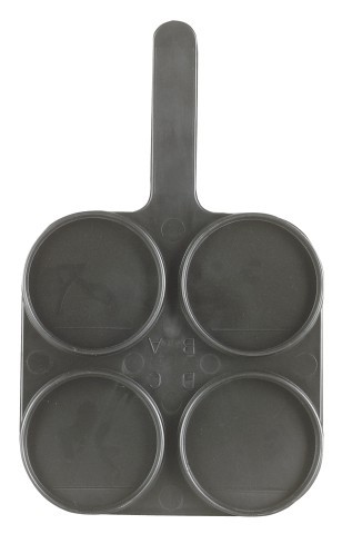 Černá plastová miska je rozdělená na 4 části. Do každé se oddojí z jedné čtvrti a po přidání Milktestu se provede orientační kontrola kvality mléka
