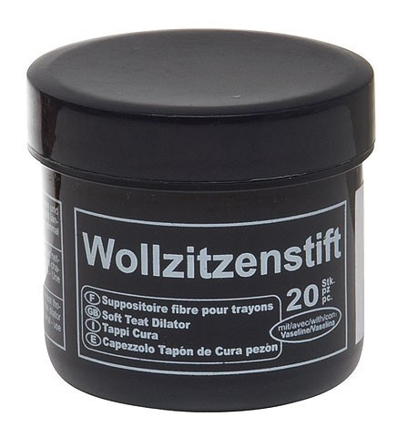 Strukové zátky s jemným štětem a sterilní vaselinou se vsunují do zanícených strukových kanálků po vydojení zanícené čvrtě vemene.