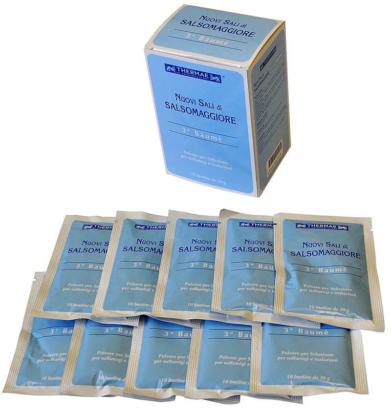 SALSOMAGGIORE INHALAČNÍ SŮL pro kompresorové inhalátory. Jedná se o instantní prášek obsahující soli a minerály nezbytné pro inhalaci. prášek se nasype do destilované vody určené k inhalaci, čímž vznikne vysoce kvalitní inhalační roztok, který se nalije do nádobky nebulizátoru. SALSOMAGGIORE solná inhalace má léčebné účinky a příznivě působí na dýchací cesty.