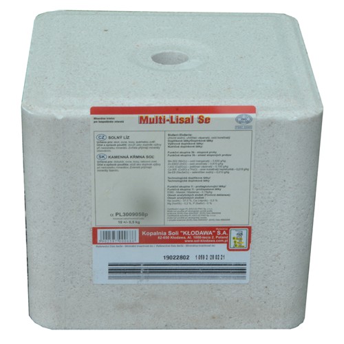 Solno-minerální liz Lisal se selenem bez mědi. Obsah Selenu 10 mg/kg, kostka 10 kg. Vhodný pro použití v ekologickém hospodářství. Původně dodáváno jako červená kostka, ale z nařízení Evropské unie bylo zákázáno přidávání červeného barviva, které dávalo kostce typickou červenou barvu.