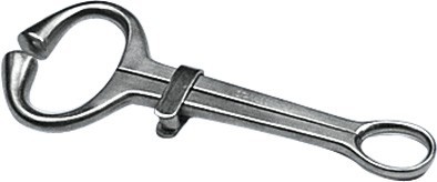 Osvědčené nerezové mulcové kleště používané k fixaci mulce za účelem vodění zvířate.