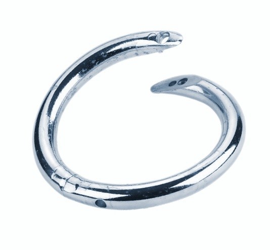 Tento chromovaný nosní kroužek o průměru 56mm je zaváděn do nosní přepážky býků či skotu.
