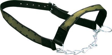 Kvalitní varianta předváděcí ohlávky v olivové barvě se stahovacím pozinkovaným řetízkem má zátylní a nánosní díl vyroben z nylonu. Je určena pro výcvik předváděných zvířat.