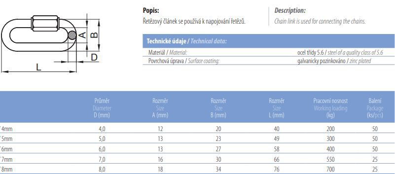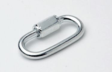 Ocelový článek s převlečenou maticí pro pevné spojení řetězů. Povrchová úprava: galvanický zinkochromát.