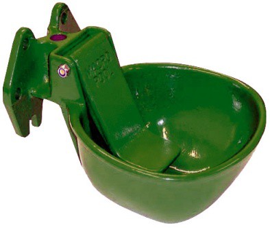 Ventilová litinová barvená napáječka pro chov skotu a koní; má litinový jazyk a rychloprůtočný ventil, který zajišťuje rychlý přísun vody.