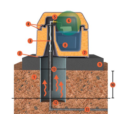 Nezámrzná míčová napáječku určená pro 20-30 koní nebo skotu. Napáječka je vhodná zejména pro celoroční provoz na pastvinách, ale stejně dobře lze použít i ve stáji. Napáječka nezamrzne do -30° C. Objem 100l.