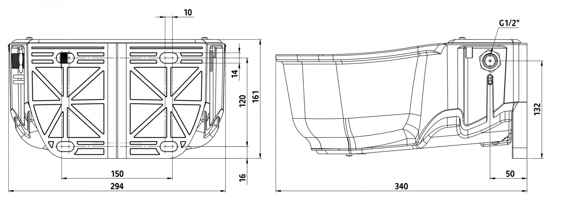 Topný kabel 31W vyhřívá misku a plovákový ventil. Integrovaný termostat spíná při+5 °C a vypíná při +13 °C. Topný kabel jde velice snadno vyměnit. Objem 5 litrů a průtok vysokotlakého ventilu je 6,5 l/min při tlaku 2-3 atm; napojení vody z levé nebo pravé strany k 1/2" potrubí. Hmotnost je 2,7 kg a má výpustnou zátku pro snadné čištění. Lze objednat plovákový ventil nízkotlaký i klemy pro montáž na hrazení. V nabídce také varianta s vyhřívaným kabelem pro ohřev cca 2 m přívodního potrubí.