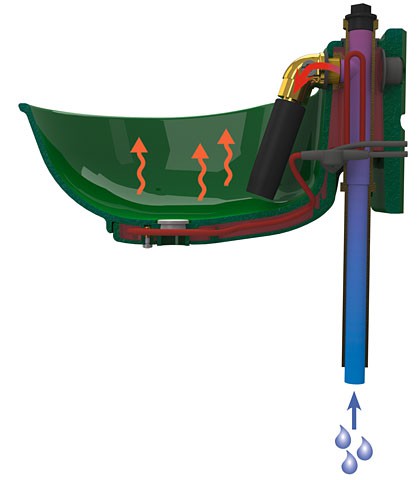 Plastová misková napáječka pro skot a koně s integrovaným výhřevným kabelem a termostatem.