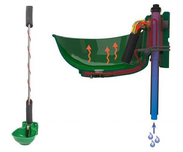 Plastová misková napáječka pro skot a koně s integrovaným výhřevným kabelem a termostatem. Je vyrobena z velmi odolného polypropylénu, který má potravinový atest. Výhřevný kabel je integrován pro misku, ventil a až 2 metry přívodního potrubí; celkový příkon je cca 73W! Mosazný kolíkový ventil má plynulou regulaci průtoku a 1/2" spodní/horní připojení. Na dně misky je umístěna výpustná zátka pro snadné čištění.