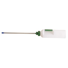 Láhev pro telata s ventilem umístěným nad rukojetí, který při dostatečně silném sání telete optimálně propouští vzduch a reguluje tak podtlak v láhvi na optimum.
