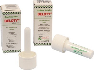 Louhová tyčinka k odrohování telat nebo kůzlat starých max. 20 dnů; účinost a bezpečnost práce je zajištěna plastovým pouzdem s bezpečnostní dětskou pojistkou. Obsah účinné látky 8g KOH vystačí na odrohování přibližně 15 telat ve stáří 10-15 dnů. Tento výrobek je zakázáno prodávat v Německu a Rakousku. Před požitím si přečtěte pečlivě příbalový leták!**NL - EN1813/8