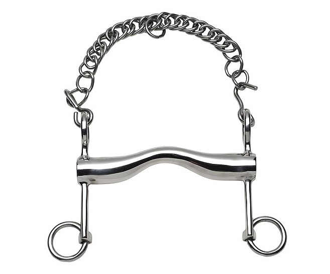 Drezurní páka z nerezavé oceli s vyklenutým udítkem 23 mm. Ramena dlouhá 110 mm.