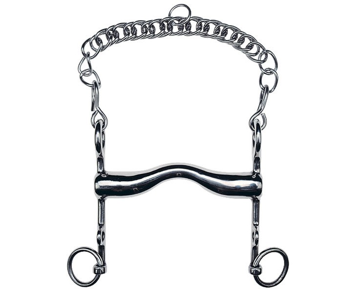 Nerezová drezurní páka s odlehčeným udítkem a mírnou klenbou.