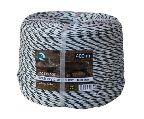 Elektrický provaz PP pro ohradníky bíločerný 5 mm / 400 m