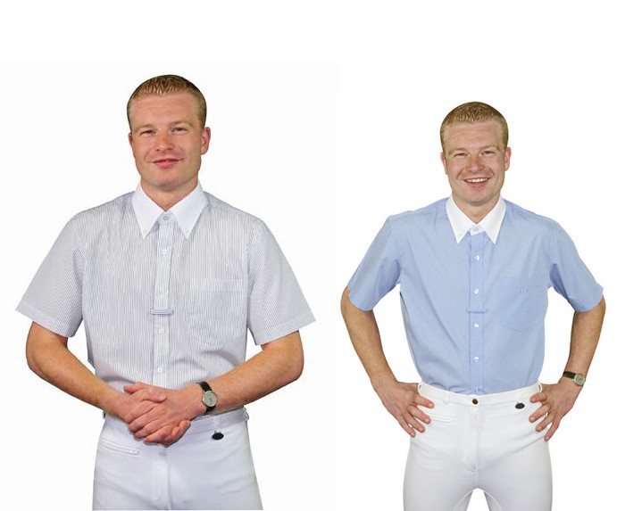 Prodyšná, snado udržovatelná jezdecká košile. V nabídce v barvě modré nebo bílé s modrým proužkem