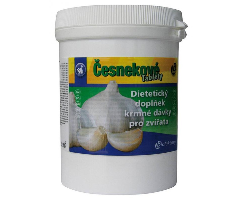 Tablety s přídavkem česneku a pivovarských kvasnic jsou určeny jako dietetický doplněk krmné dávky pro zvířata. Tablety obsahují speciálním způsobem upravený přírodní sušený česnek, jehož příznivé účinky na organismus se projevují lepším příjmem potravy, trávením i resorbcí živin (regulace procesů látkové výměny). Vytváří nepříznivé podmínky pro střevní parazity, mají baktericidní účinky, vhodně působí na prevenci zánětlivých stavů, působí antiskleroticky (stárnoucí i stará zvířata), apod. Na česnek jsou téměř všechna zvířata pozitivně vnímavá, česnek stimuluje a podporuje příjem krmiva svými dietetickými vlastnostmi, což se projevuje na celkovém stavu zvířat.