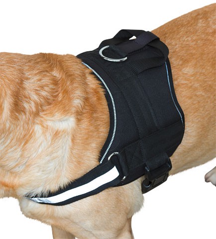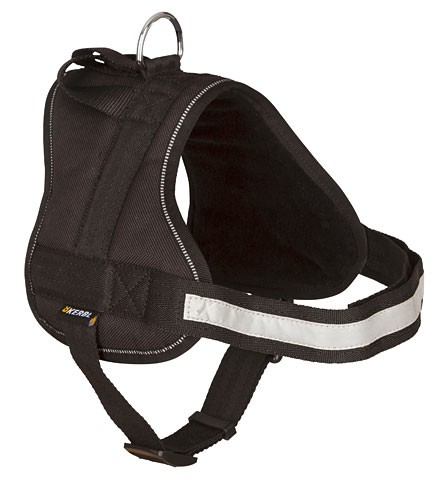 Nylonový postroj pro psy v černé barvě s reflexními prvky