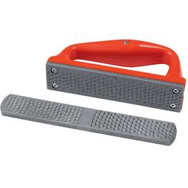 Rašple na kopyta s madlem pro drobné domácí úpravy. Set obsahuje 2 kusy: rašple s anatomickým madlem a rašple bez madla s jemným a hrubým zubem. Vše je zabaleno v plastovém obalu.